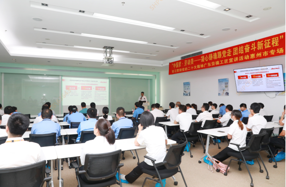 为深入学习宣传贯彻党的二十大精神,切实引领广大职工群众在新时代新征程上踔厉奋发、勇毅前行。5月16日晚,"中国梦·劳动美一凝心铸魂跟党走、团结奋斗新征程”学习贯彻党的二十大精神广东劳模工匠宣讲活动走进多宝电竞科技。宣讲会由党的二十大代表、学习贯彻党的二十大精神市委宣讲团成员、中海油惠州石化有限公司技能专家高东斌授课,惠州市总工会组宣部部长李伟宏,组宣部高俊华、惠阳区总工会副书记钟耀辉、组宣部负责人米天平、公司工会主席/采购中心总监杨峰伟以及各中心/事业部代表50余人参加。