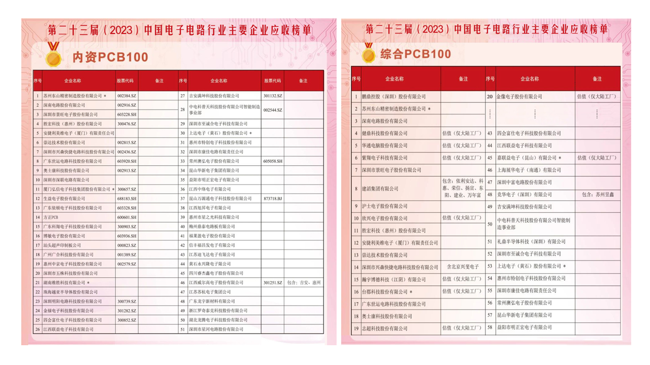 近期,中国电子电路行业协会(CPCA)正式发布了《第二十三届(2023)中国电子电路行业主要企业营收榜单》。多宝电竞科技凭借稳健坚韧的市场表现与综合实力荣登2023年度内资PCB百强榜单第4名,同时在综合PCB排名中位列第11名。